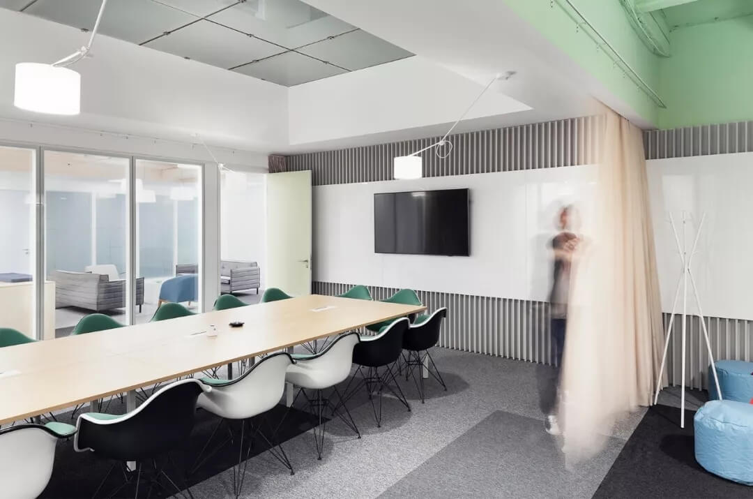 FT快捷的工作流程使辦公空間中的各種協(xié)作點(diǎn)更加容易 - 從入口處的大型開(kāi)放式活動(dòng)區(qū)域開(kāi)始,繼續(xù)通過(guò)各種開(kāi)放式會(huì)議區(qū)域流入休息區(qū)和休閑區(qū),創(chuàng)造了一個(gè)流動(dòng)的工作環(huán)境。邊界沒(méi)有嚴(yán)格設(shè)定。