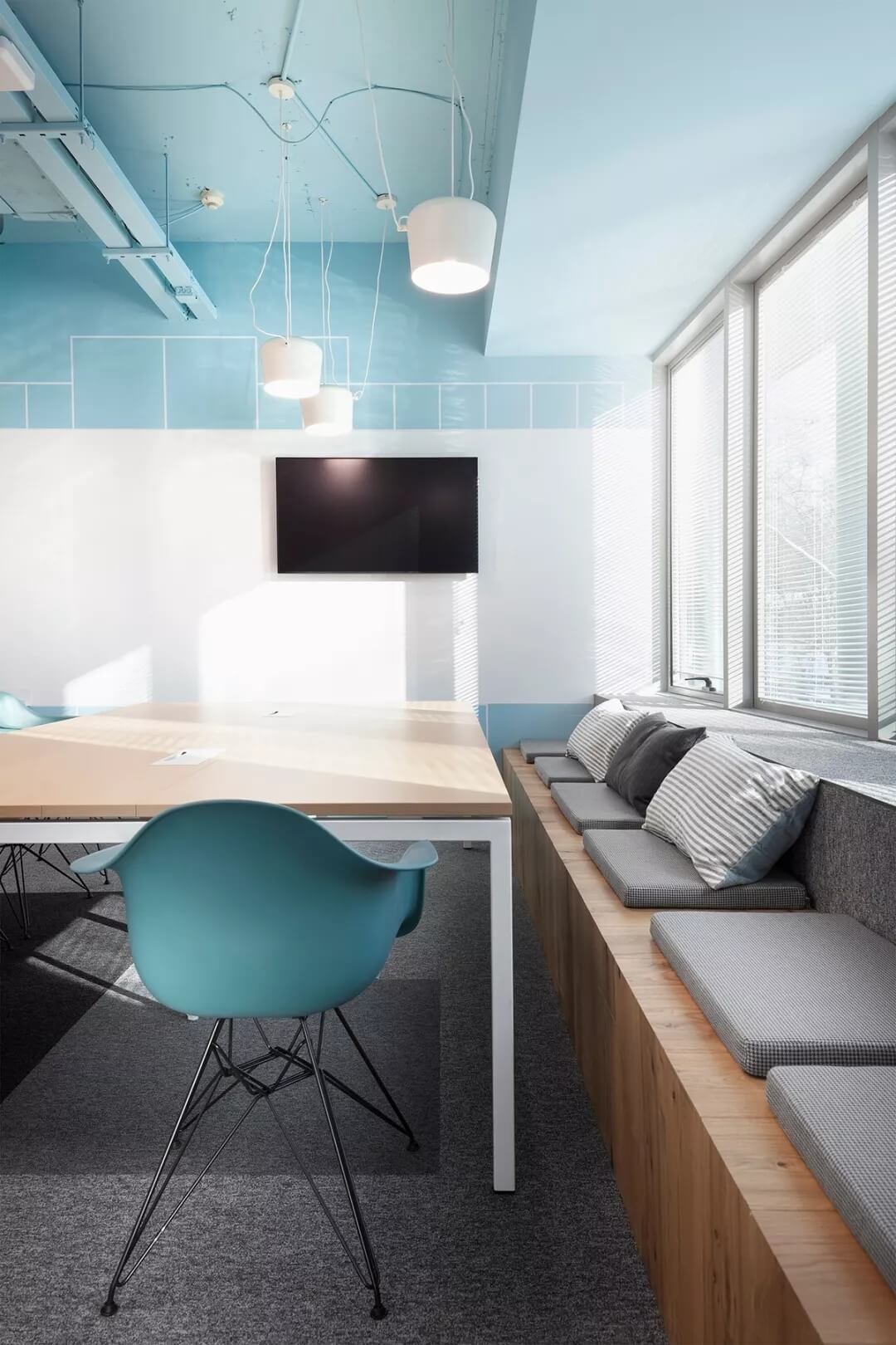“位于保加利亞三層樓的新金融時(shí)報(bào)辦公樓,是首都索非亞最負(fù)盛名的地區(qū)。當(dāng)Cache atelier的建筑師受委托設(shè)計(jì)FT的新創(chuàng)意空間時(shí),他們想創(chuàng)造一個(gè)年輕的靈魂空間,但又不失平靜輕松的舒適感。