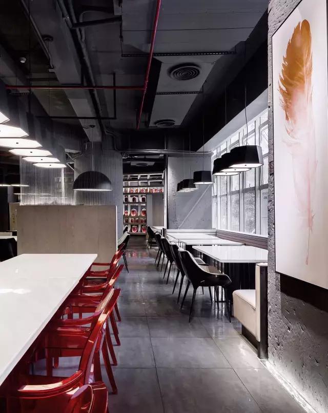 設(shè)計師的初心是以最少的項目預(yù)算,發(fā)揮此案項目最極致的藝術(shù)空間設(shè)計體驗。對成本的嚴(yán)格把控,給自己在設(shè)計與施工過程中施加壓力與難度,對材料及工藝的優(yōu)化成為了主案設(shè)計師不斷反復(fù)思考的問題。設(shè)計師決定保留空間原始的承重墻、柱子,解決傳統(tǒng)設(shè)計里的平面功能布局,除此之外對空間分布,區(qū)域劃分增加更多體驗感和現(xiàn)代藝術(shù)文化感受,讓來訪的食客,一步一個驚喜,動線流暢。設(shè)計除了營造合理用餐和聚會的優(yōu)雅環(huán)境,還通過精心的平面布置、空間規(guī)劃以及摩登藝術(shù)軟裝陳設(shè),使空間充滿時尚的藝術(shù)氛圍。當(dāng)然主筆設(shè)計師的重點(diǎn)還是不斷考慮食客的用餐體驗感及把產(chǎn)值比和支出比算準(zhǔn)、要有視覺效果和很舒服的空間感受,能源消耗要最低化,后勤動線和客人動線要明了。