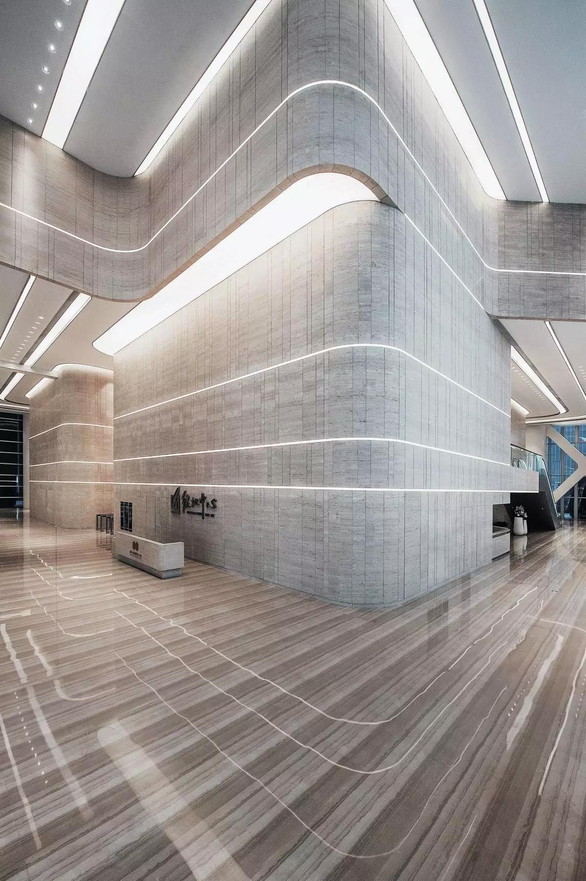 大堂設(shè)計(jì)將空間塑造作為首選,將形式、質(zhì)感、光與影等要素組合融入,創(chuàng)造性的表達(dá)空間的品質(zhì)和精神,放棄了多余的裝飾與造型,著重展現(xiàn)室內(nèi)空間與建筑空間的統(tǒng)一性。