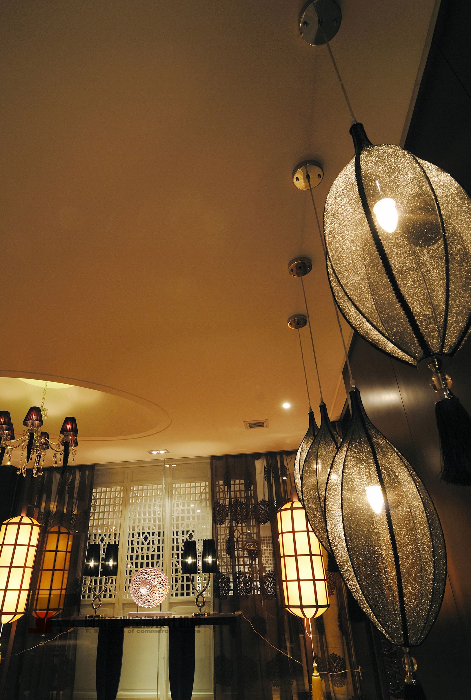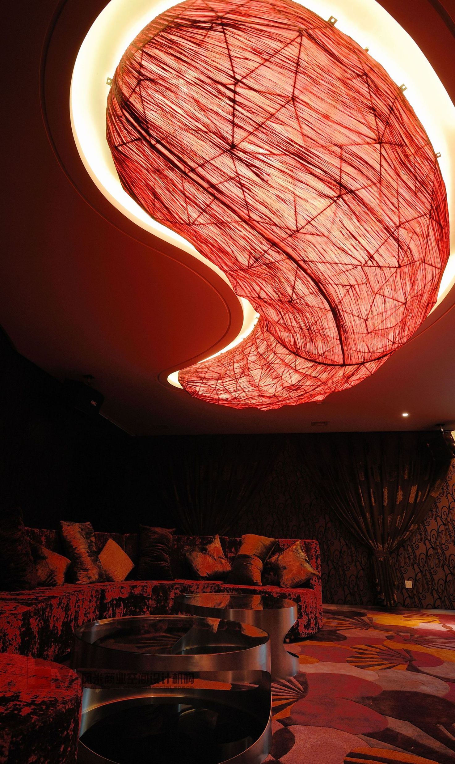 現(xiàn)代人的價(jià)值觀是一個(gè)在顛覆中發(fā)展的時(shí)期,人們的觀念在顛覆,消費(fèi)的觀念亦在成熟中顛覆。所以在這次設(shè)計(jì)中我們要通過(guò)另一種美學(xué)設(shè)計(jì)手法再一次顛覆人們的審美價(jià)值觀。在設(shè)計(jì)中空間內(nèi)以超出常規(guī)的比例關(guān)系的形態(tài)來(lái)表露意識(shí)形態(tài)。在材料排布上以非慣性的處理手法來(lái)獲得人們對(duì)新形餐飲空間的認(rèn)知,在色彩運(yùn)用上以單體空間的色相統(tǒng)一來(lái)刺激人們對(duì)空間的色彩印象,在家具的造配上追求戲劇化的高度,奢華夸張的概念。使空間在整體上達(dá)到一種戲劇化的舞臺(tái)效果,讓人們游走其中產(chǎn)生一種非常規(guī)概念的心理感受,從而感受到空間的美感。